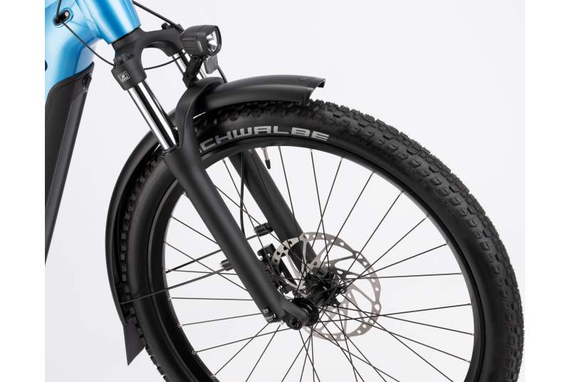 Lo que más distingue a esta e-bike es su capacidad de ofrecer una conducción fluida en todo tipo de superficies. Gracias a su robusto cuadro de aluminio de alta calidad y su geometría optimizada, esta bicicleta se adapta perfectamente a todas las exigencias de los caminos urbanos y los senderos forestales. El diseño de su horquilla SR Suntour XCM34 BOOST de 100 mm de recorrido asegura que puedas enfrentarte a los baches más grandes con total comodidad, ya sea en caminos de tierra, senderos con raíces o en la ciudad.