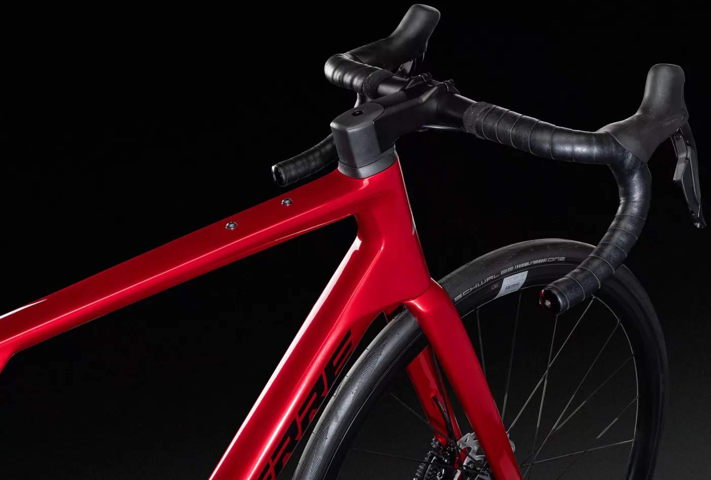 Si hablamos de términos de control y estabilidad, la bicicleta tiene potentes frenos hidráulicos Shimano 105 Di2, garantizando una frenada precisa. Tendrás toda la seguridad que necesitas durante tus rutas, ya que este sistema de frenos responderá incluso en las condiciones más complicadas como son la humedad o la lluvia. Y no solo eso, esta bicicleta cuenta con una horquilla de carbono de alta calidad y el juego de ruedas DT Swiss E1800 Spline que complementan su diseño, proporcionándote una conducción suave y eficiente.